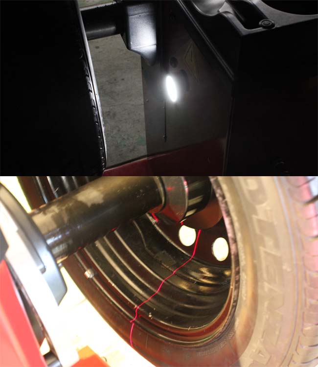 (スケールを当てる位置によって実際のインチ数、幅数と異なる数値が入力される場合がありますのでご注意ください) - ALS1, ALS2モードでは、レーザービームが照射され、ウェイト貼付け作業が容易に。 本機だけの機能です。